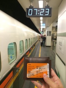 Sau quá trình chuẩn bị tất cả mọi thứ, ba lô, giấy tờ, vé tàu sẵn sàng, 6h30 sáng mình bắt đầu khởi hành đi tàu Metro tới trạm tàu chính ở Đài Bắc để đón chuyến tàu lúc 7h36 đến Chiayi. Với tàu tốc hành, chỉ khoảng 1 tiếng ngồi thoải mái thì cũng đã đến nơi. Trạm tàu Chiayi cũng lớn và hiện đại không thua kém sân bay. Mục tiêu bây giờ là phải tìm được xe bus từ Chiayi đến núi Alishan cho kịp trước 1h để chuyển xe bus lên trạm Tatajia.