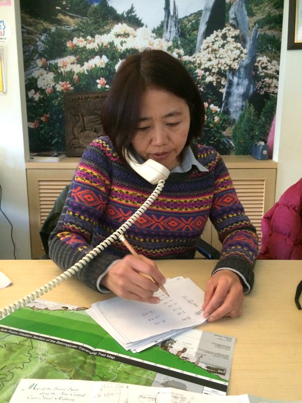 Một phần nhỏ vì sự ám ảnh bởi cách phục vụ ở Việt Nam, phấn lớn là do cô rất rất là nhiệt tình, chỉ hết mình cái này, chỉ hết mình cái nọ, lấy bản đồ ghi cụ thể vì sợ mình quên, còn gọi điện thoại hỏi thông tin chỗ ở, chỗ đi cho mình. Mình bị xúc động không nhẹ, hỏi thăm thông tin. Cô cho mình biết cô cũng từng học ở Đại học quốc gia Đài Loan (nơi mình đang học tiếng hoa), cô học ngành Lịch sự, cô nói cô rất yêu thích thiên nhiên, Đài loan cung cấp cho cô chỗ làm, chỗ ngủ ở đây. Thật sự mình rất xúc động và cám ơn một người như cô, cô đem lại thông tin hữu ích, sự thân thiện, cũng như đóng góp cho đất nước mình.