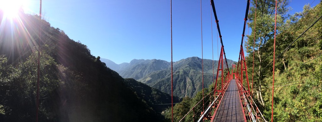 Với sự trợ giúp của Google Maps và hỏi đường người dân, thì sau khoảng 40 phút đi thì mình tới thấy câu cầu sơn màu đỏ rất đẹp. Đây là cầu treo cầu vồng (彩虹吊橋). Trông bức ảnh cũng đẹp chứ nhỉ.